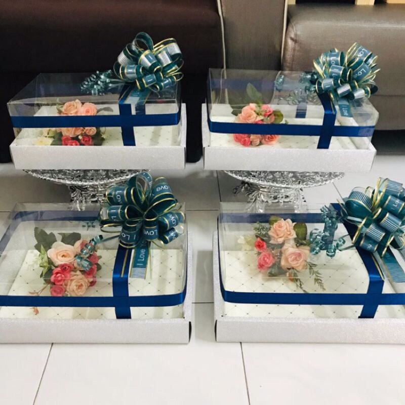 Hiasan isian kotak hadiah kado gift hampers box packing packaging slime . Wadah tempat kotak kue box mika hantaran lamaran nikah transparent cake box . Kotak hantaran seserahan pernikahan murah isi 4 box full mika full hiasan. Hiasan yang sesuai untuk gubahan hantaran kotak seperti ini adalah reben, tali rustik, bunga segar, bunga tiruan dan daun kering. Af 1102 offer rose / hand bouquet / bunga rose / bunga hiasan . Beli kotak hantaran nikah harga murah & grosir agustus 2022 terbaru di tokopedia! ∙ promo pengguna baru ∙ kurir instan ∙ bebas ongkir ∙ cicilan 0%. Box exclusive transparent pvc with base/ kotak hantaran siap tapak silver n gold.